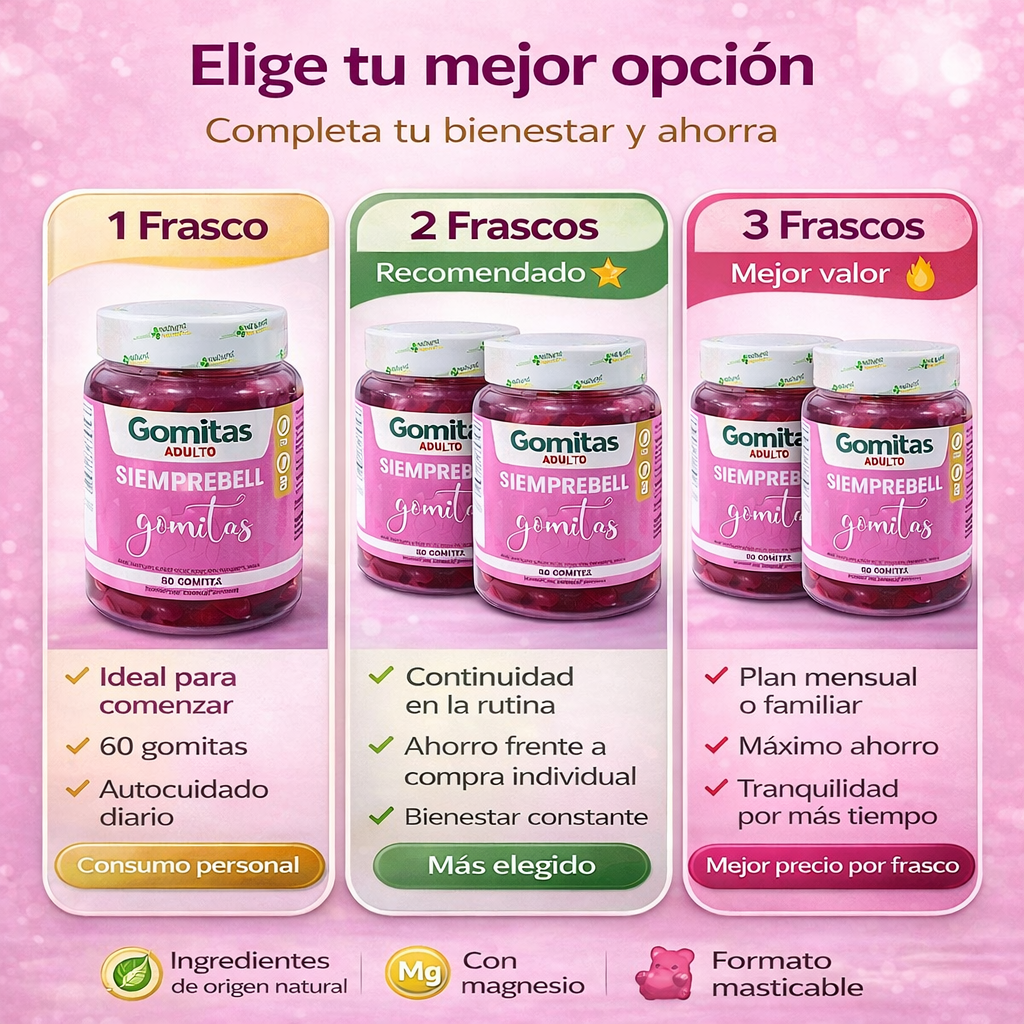 Siemprebell Gomitas Adulto están pensadas para acompañar tu rutina de autocuidado de manera práctica y agradable.